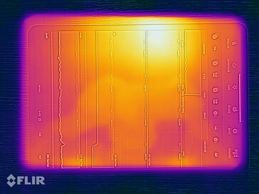 (±) La température maximale du côté supérieur est de 40.2 °C / 104 F, par rapport à la moyenne de 33.6 °C / 92 F, allant de 20.7 à 53.2 °C pour la classe Tablet.