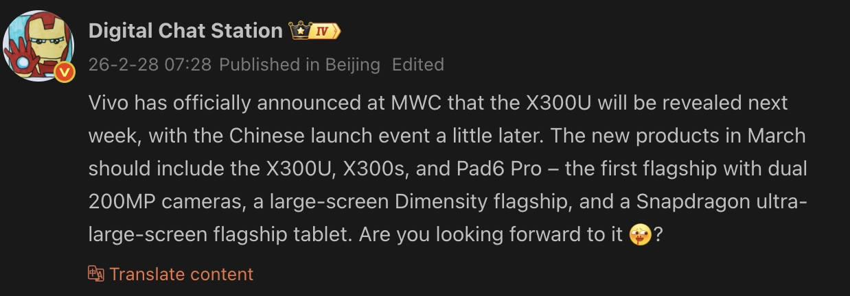 Dans un message distinct sur Weibo l'informateur a également révélé le calendrier de sortie. Le Pad 6 Pro devrait être lancé en Chine en mars, en même temps que le Vivo X300 Ultra et le Vivo X300s. Cependant, la disponibilité mondiale reste incertaine. En attendant, le Vivo X300 Ultra et le Vivo X300 FE ont récemment passé les certifications, ce qui laisse présager une sortie mondiale.