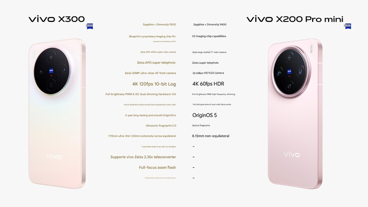 Cependant, quelques heures avant le lancement, le leaker Weibo Digital Chat Station a fourni des informations très détaillées sur les spécifications des Vivo X300 Pro et Vivo X300. Pour ce dernier, il existe également une comparaison officielle de certaines données techniques avec le Vivo X200 Pro Mini, auquel le Vivo X300 succédera apparemment.