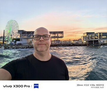 Je ne suis pas vraiment un grand fan de selfie, mais dans l'intérêt de la science, j'ai pris quelques selfies à différents endroits et dans différentes conditions d'éclairage. À mon avis, le Vivo X300 Pro s'est considérablement amélioré en termes de qualité de selfie par rapport au Vivo X200 Ultra. Dans la plupart des cas, le dernier modèle phare de Vivo offre l'image la plus naturelle du quatuor, non seulement grâce à son champ de vision nettement plus large, mais aussi en termes de tons de peau, du moins dans mon cas. Dans le dernier exemple, où le coucher de soleil sert de source de rétroéclairage, le Vivo X300 Pro éprouve quelques difficultés.