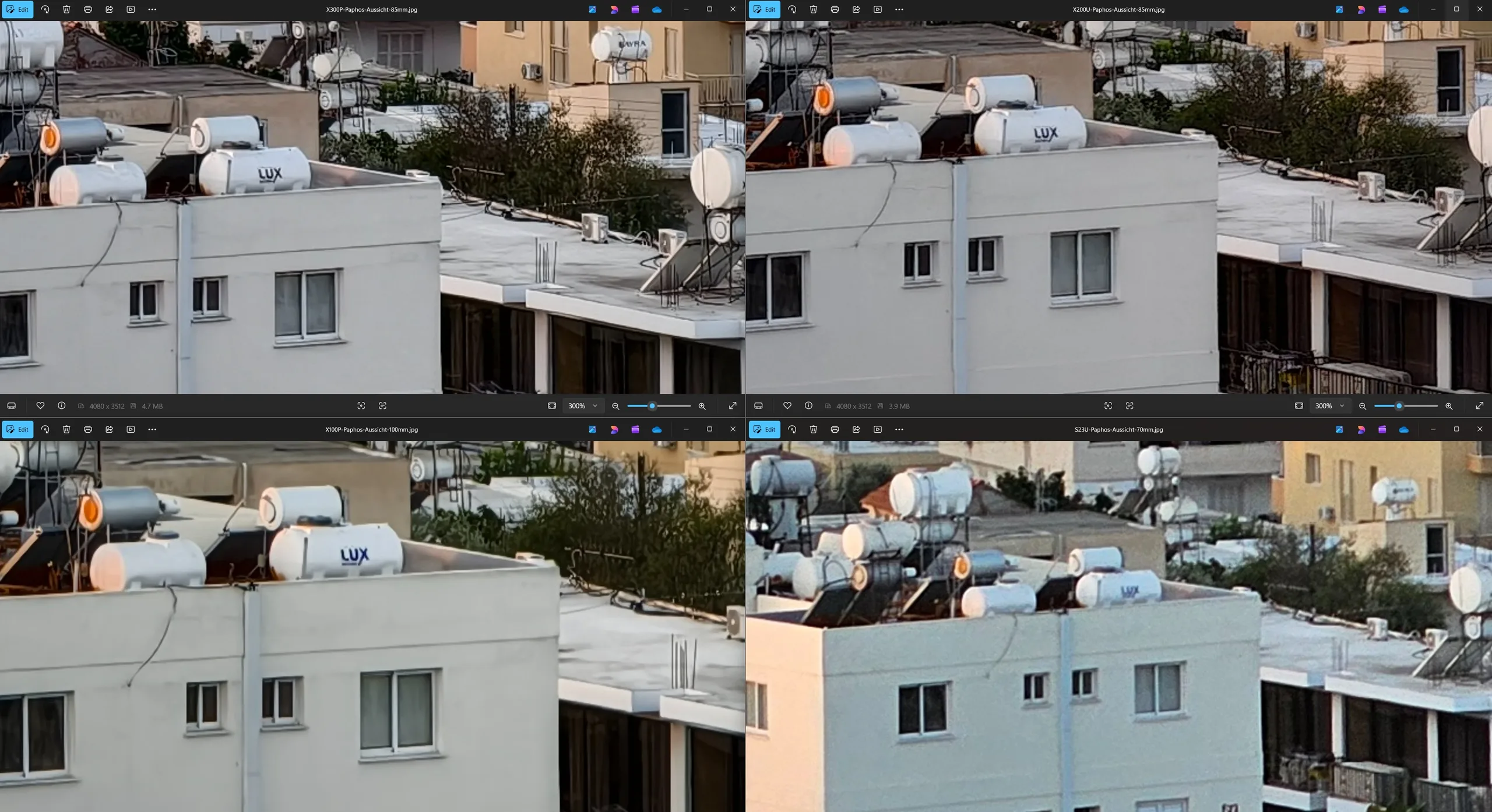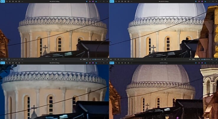 L'église Saint-Lazare de Larnaca a servi de sujet de référence pour la première comparaison ultra grand-angle entre les modèles Vivo. Je m'excuse pour les angles de prise de vue légèrement différents dans chaque cas, mais le gagnant devrait être assez clair malgré tout. Le Vivo X200 Ultra offre non seulement le champ de vision le plus large et est le seul modèle capable de capturer l'église dans son intégralité, mais son rendu des détails plus éloignés est aussi clairement le plus net. Même à la lumière du jour, il est donc le grand vainqueur à un grossissement de 300×, bien que le Vivo X300 Pro soit encore nettement meilleur que le Vivo X100 Pro.