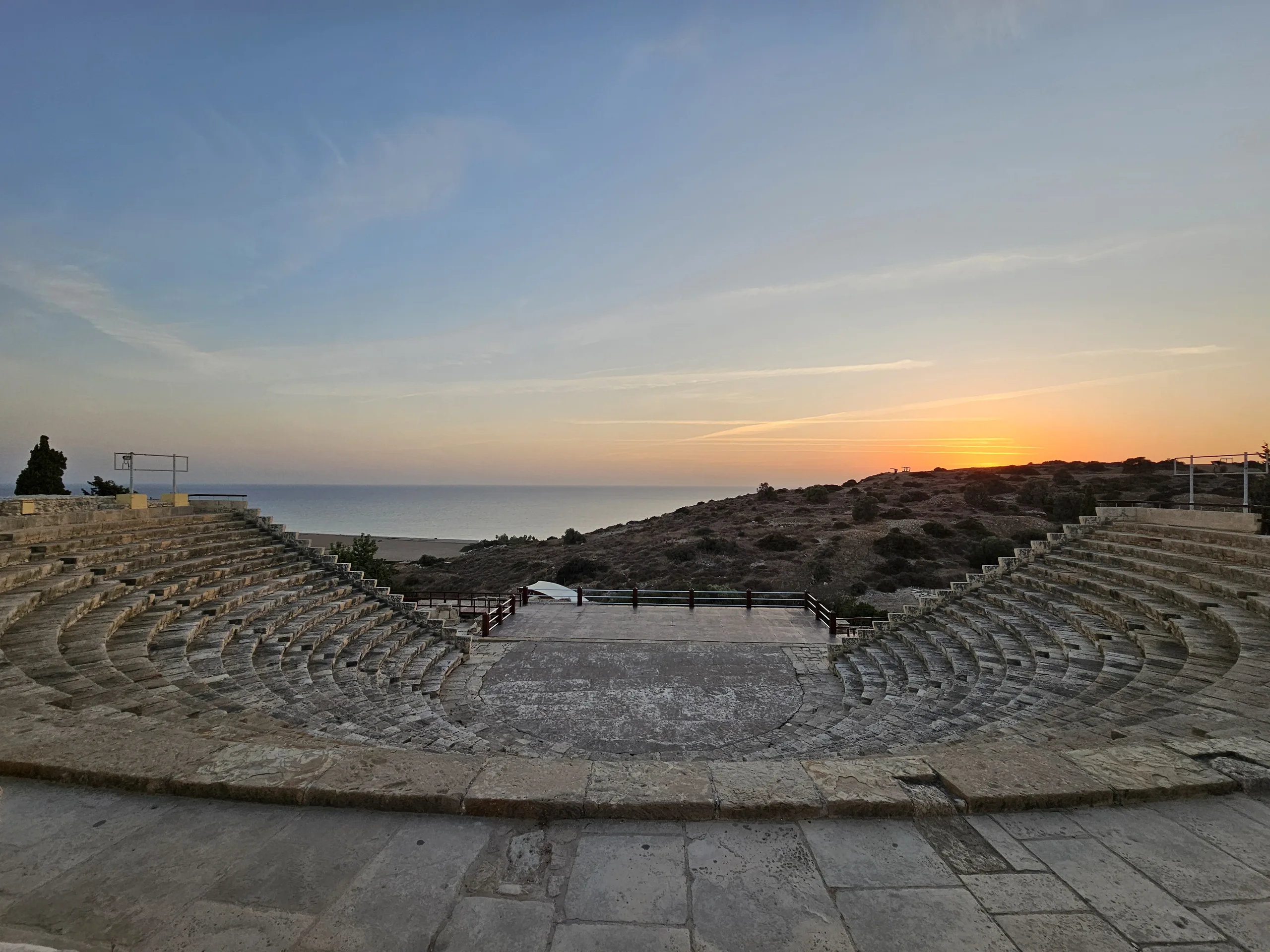 Pour le deuxième exemple en ultra grand angle, nous nous rendons à 81 kilomètres de là, à Curium (Kourion), un ancien site archéologique qui offre une vue imprenable sur les environs. En novembre, il ne se passe généralement pas grand-chose ici, si bien que certaines parties du site peuvent sembler presque désertes, comme l'amphithéâtre au coucher du soleil. Cette comparaison inclut également le téléphone Samsung de 2023 dans la gamme ultra grand-angle, qui apparaît dans le coin inférieur droit de chaque image.
