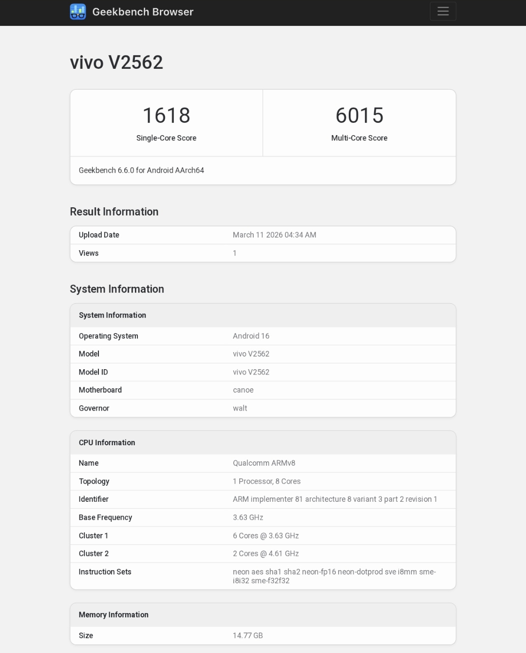Par ailleurs, le X300 Ultra s'est arrêté sur Geekbench avant d'être commercialisé. Désigné par son numéro de modèle V2562, l'appareil combine 16 Go de RAM et les mêmes caractéristiques que le X300 Ultra Snapdragon 8 Elite Gen 5 qui équipe des produits phares comme le RedMagic 11 Pro et le OnePlus 15 (actuellement 899 $ sur Amazon). Nous vous déconseillons toutefois de tirer des conclusions sur les performances à partir de ces résultats à ce stade précoce.