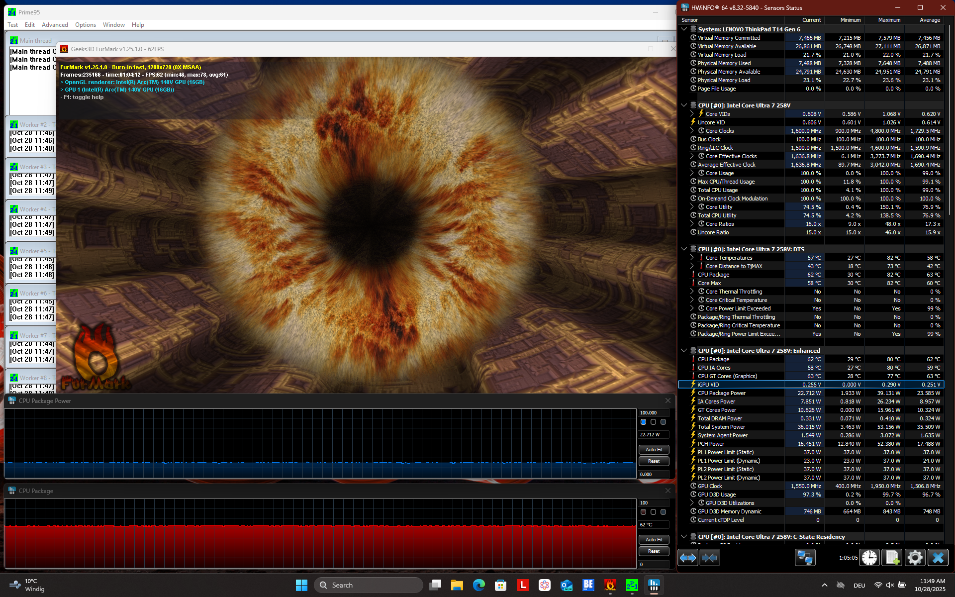 Lors du test de stress, le Lenovo ThinkPad T14 G6 Intel maintient ses performances sans aucun ralentissement.