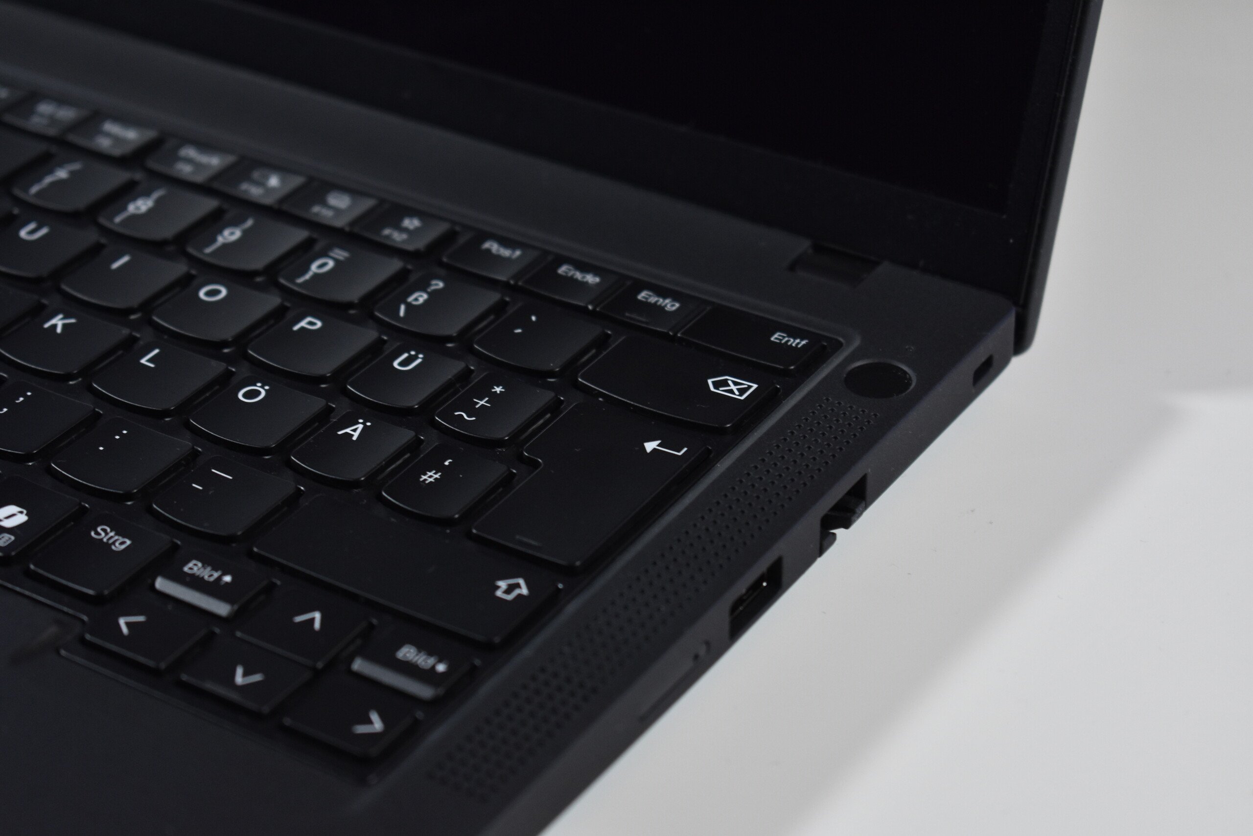 Ne vous fiez pas à ce qui est bon : Le clavier du Lenovo ThinkPad T14 Gen 6 reste inchangé. Les touches Chiclet arrondies avec une course de 1,5 mm offrent une expérience de frappe très confortable, ce qui rend la saisie de longs textes, comme cette revue, agréable. La disposition du clavier est l'une des meilleures du marché, avec des touches fléchées bien espacées et des touches F groupées. De plus, le clavier est doté d'un rétroéclairage LED blanc à deux niveaux, ce qui permet de taper confortablement dans l'obscurité.