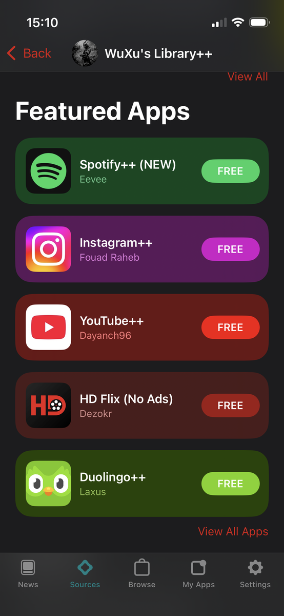 Altstore Classic offre la possibilité de télécharger des applications à partir d'autres sources, et si certaines d'entre elles donnent accès à développeurs légitimesd'autres bibliothèques proposent des versions modifiées d'applications spécialement conçues pour contourner les fonctions payantes.