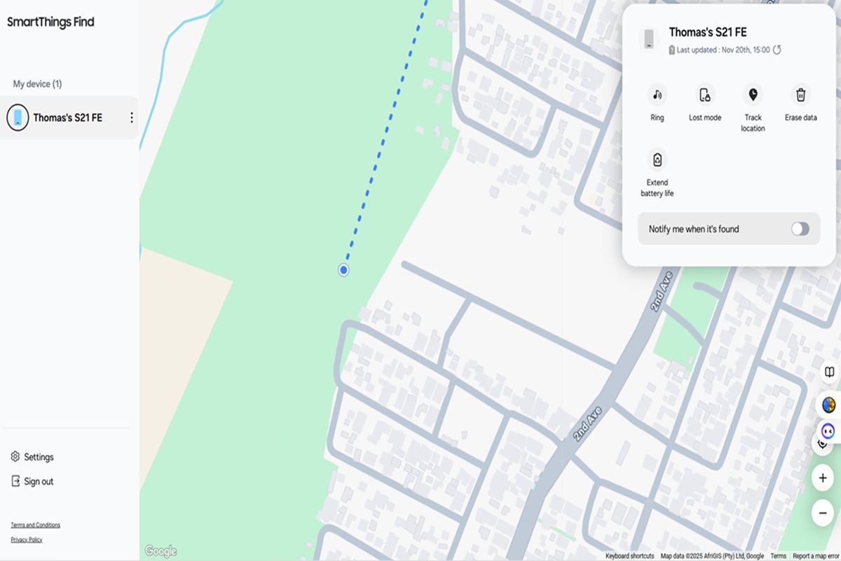 Thomas est venu me demander de l'aide. Avec sa permission, je me suis connecté à son compte Google pour commencer le suivi via Google Find HubSamsung SmartThings Findet Google Maps. Ce qui a suivi est devenu une démonstration pratique de la puissance de ces réseaux de suivi des consommateurs lorsqu'ils sont utilisés ensemble.