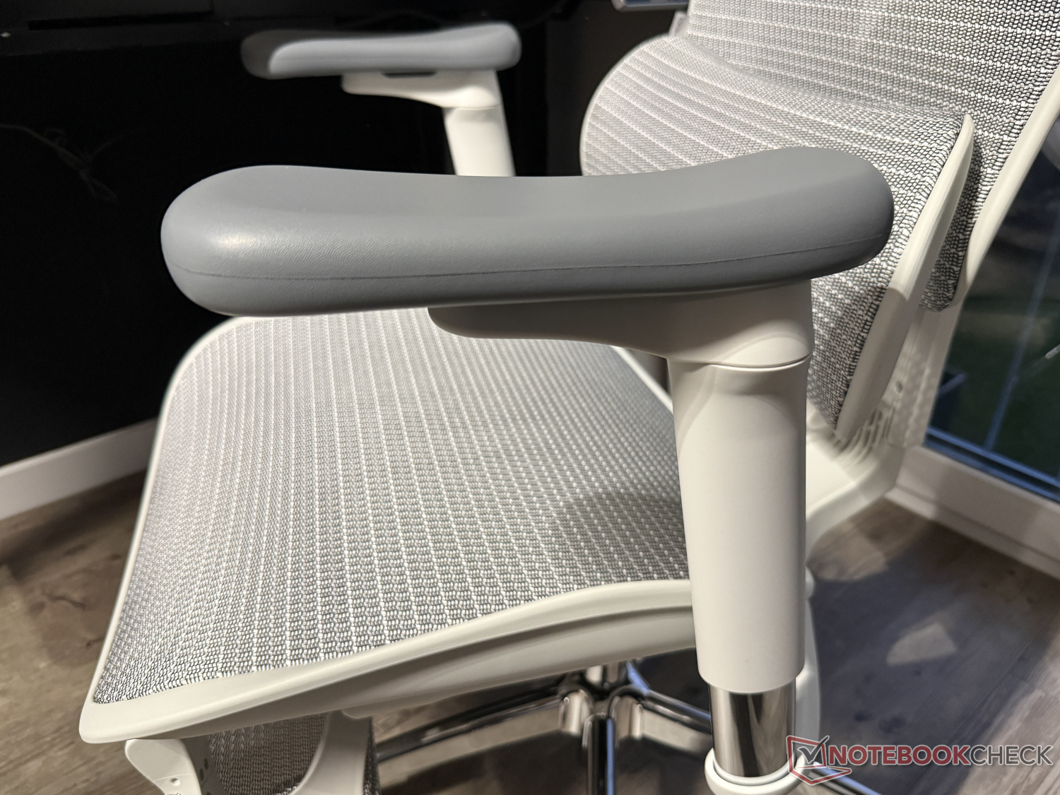 Le siège est entouré à gauche et à droite d'un accoudoir 4D légèrement rembourré. Ceux-ci peuvent non seulement être réglés en hauteur jusqu'à 9 cm, mais aussi être avancés de quelques centimètres. Le fait qu'ils puissent être inclinés à environ 45 degrés est particulièrement pratique pour une assise détendue. Vous pouvez ainsi poser confortablement vos bras dessus, tandis que vos mains reposent sur votre ventre.