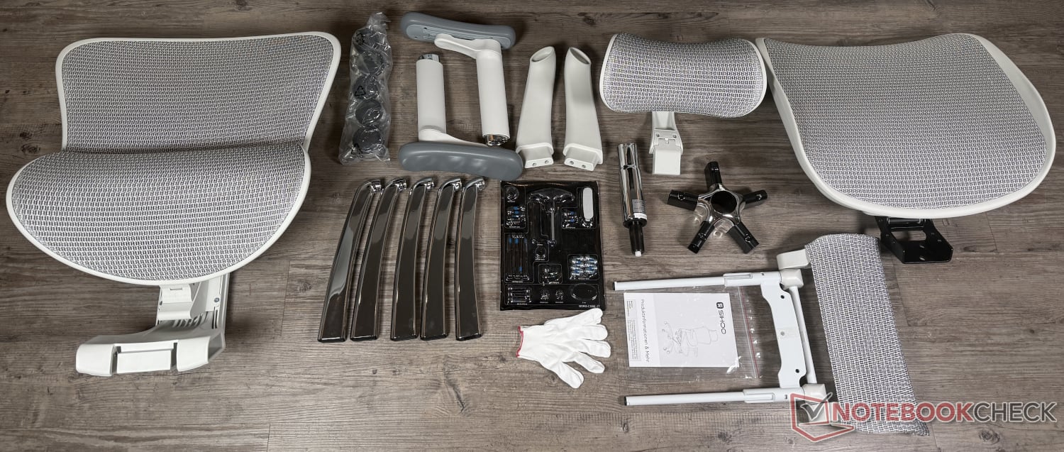 La chaise de bureau ergonomique a été livrée dans deux cartons assez grands et lourds. Déballés, ils contiennent une vingtaine de pièces ainsi que toute une série de vis et autres petites pièces. L'avantage est que tous les outils sont inclus dans la livraison et qu'il n'est donc pas nécessaire de fouiller dans la boîte à outils. Autre point positif : le fabricant n'utilise pas de gros blocs de polystyrène comme matériau d'emballage, mais du carton. Au final, un sac poubelle de 25 litres était encore plein de sacs et d'autres déchets plastiques.