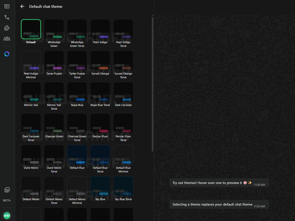 WhatsApp sur iOS et Android prend en charge les thèmes, ce qui permet aux utilisateurs de modifier non seulement leur arrière-plan, mais aussi la couleur de la bulle de conversation elle-même. Pour l'instant, ni l'application web ni l'application de bureau ne partagent la même fonctionnalité, mais cela devrait changer.