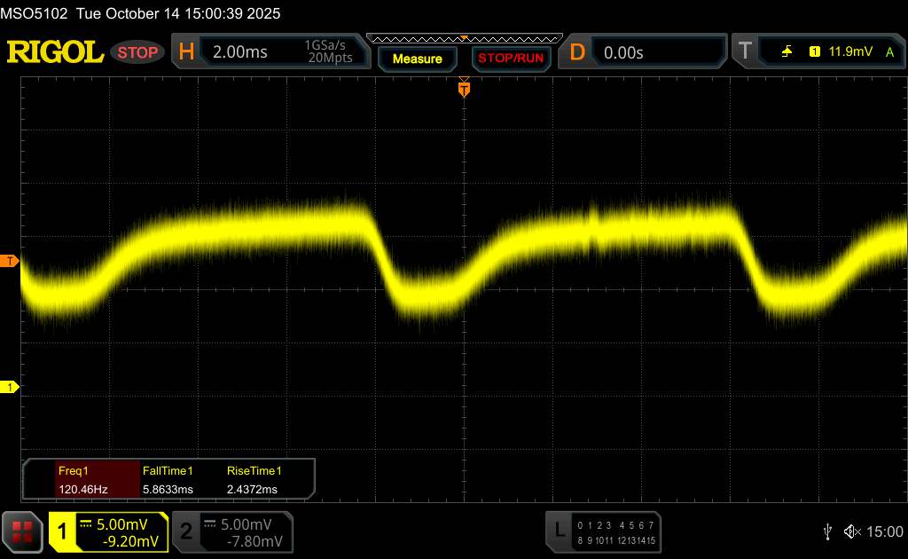 Comme c'est généralement le cas avec les écrans OLED, la luminosité de l'écran est contrôlée par modulation PWM. Il en résulte un scintillement de l'écran et, selon le fabricant, une protection des yeux (fréquence : 2 160 Hz). Nos mesures d'affichage ont révélé un scintillement de base d'environ 120 Hz.