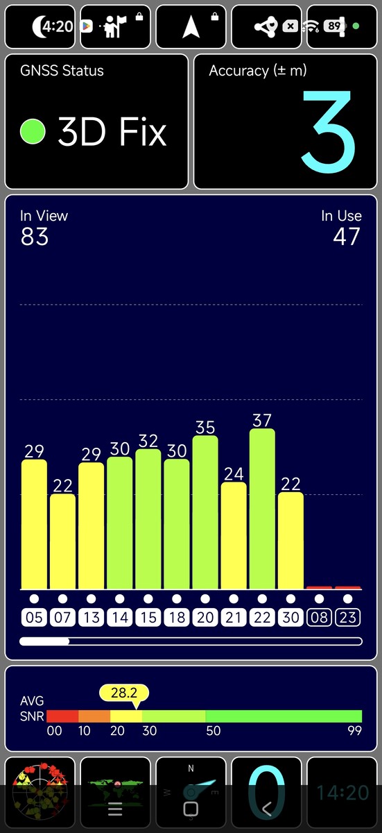En extérieur, le Xiaomi 17 Pro a rapidement capté un signal satellite et a localisé son emplacement avec une précision de 3 mètres. Il utilise les principaux réseaux mondiaux de satellites en mode bi-bande pour le positionnement.