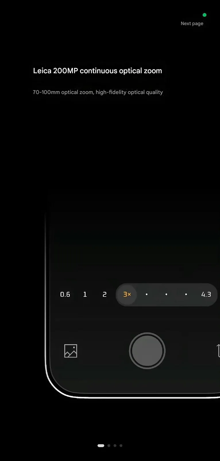 Dans les images ci-dessous, outre les positions de zoom habituelles de 0,6x, 1x et 2x, on peut également voir une plage entre le zoom 3x et le zoom 4,3x, qui semble couvrir les longueurs focales entre 70 mm et 100 mm et qui est complétée par un autre zoom 8,6x. En outre, un "zoom optique continu Leica 200 MP" et une "qualité optique haute fidélité" sont spécifiquement mentionnés. Xiaomi ne propose donc pas une plage de zoom plus importante que sur le Xiaomi 15 Ultra, mais apparemment un zoom de meilleure qualité.