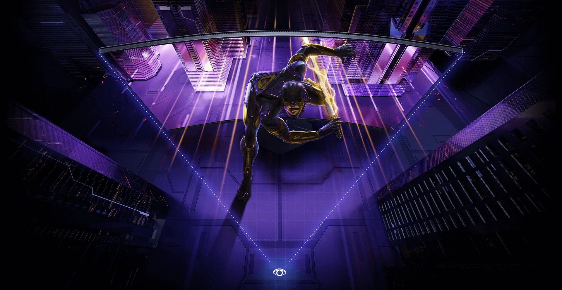 Le panneau arrière présente un design remarquable et dispose d'un éclairage RVB. On y trouve deux ports HDMI et DisplayPort, mais aucun port USB. Le moniteur peut être réglé en hauteur, tourné et incliné à l'aide du support fourni, et peut être monté sur un support mural ou un bras de moniteur en utilisant la norme VESA. Enfin, le moniteur a un rayon de courbure de 1 500 millimètres