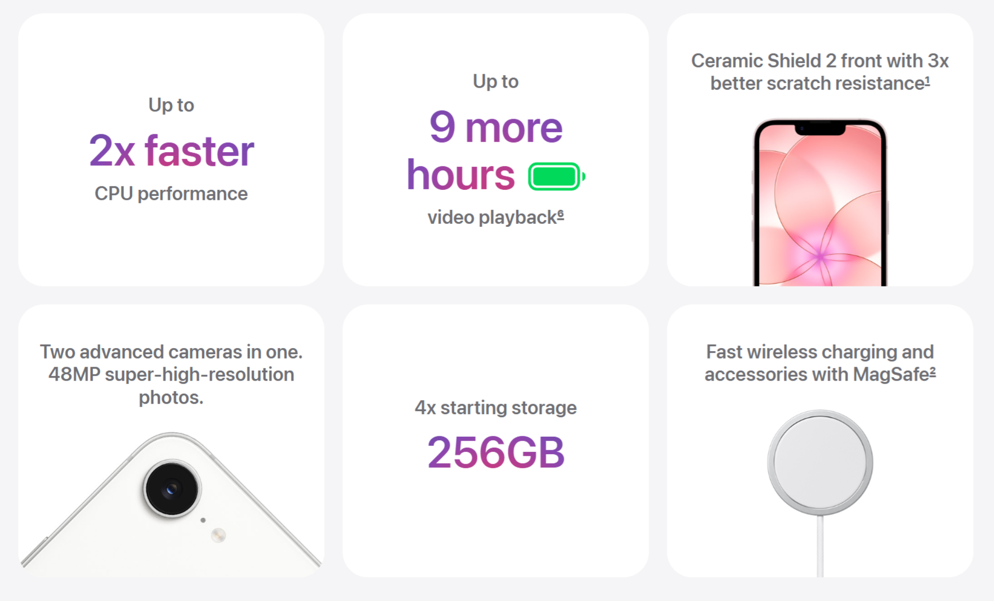 Parmi les autres améliorations, citons l'adoption du verre Ceramic Shield 2, de MagSafe et du chipset A19 de Apple. Par ailleurs, MagSafe ajoute 2 g au poids de l'iPhone 17e, qui passe ainsi à 169 g à la sortie de l'emballage. Malheureusement, Apple a plafonné la charge MagSafe à 15 W sur l'iPhone 17e.