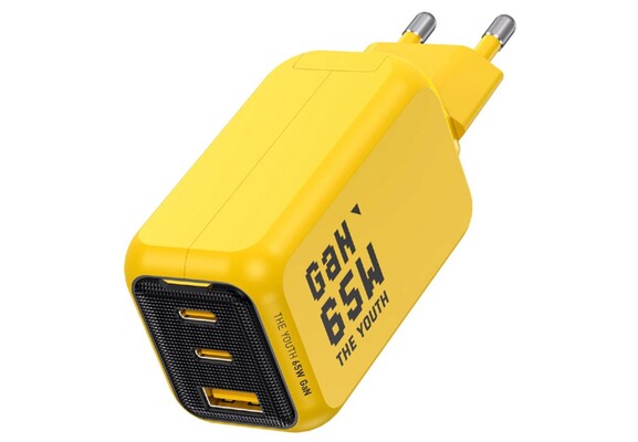 Quoi qu'il en soit, le nouveau chargeur pliable à 3 ports Aohi Youth PD PPS 65W se démarque visuellement, puisque la plupart des autres produits de cette catégorie sont gris ou noirs. Celui-ci se présente dans un design jaune frappant, mais le modèle européen n'est pas pliable, ce qui contredit le nom de son produit. Seule la version américaine peut être pliée afin de réduire ses dimensions pour le transport et le stockage. Cela dit, le chargeur de 65 watts est relativement compact en l'état et mesure 72 x 43 x 35 mm.